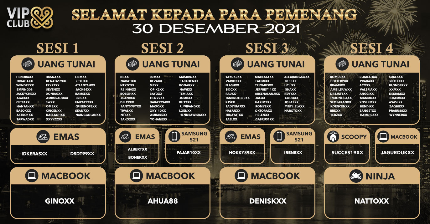 PEMENANG EVENT ANNIVERSARY VIPCLUB88 KE 9